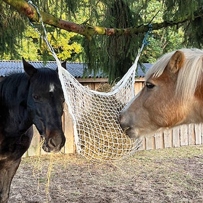 Hønet forlænger hestens spisetid og mindsker risikoen for spild.