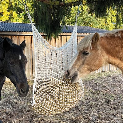 Hønet forlænger hestens spisetid og mindsker risikoen for spild.